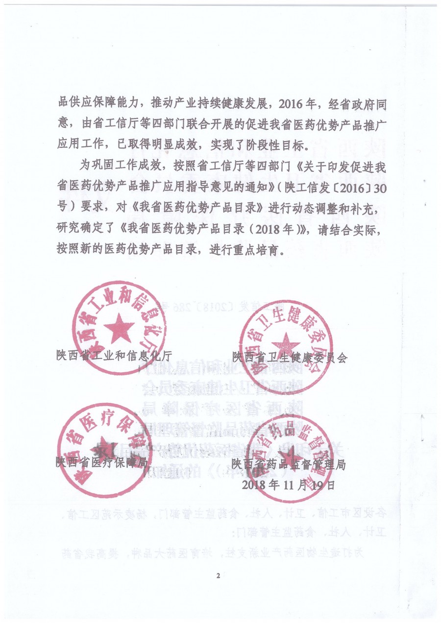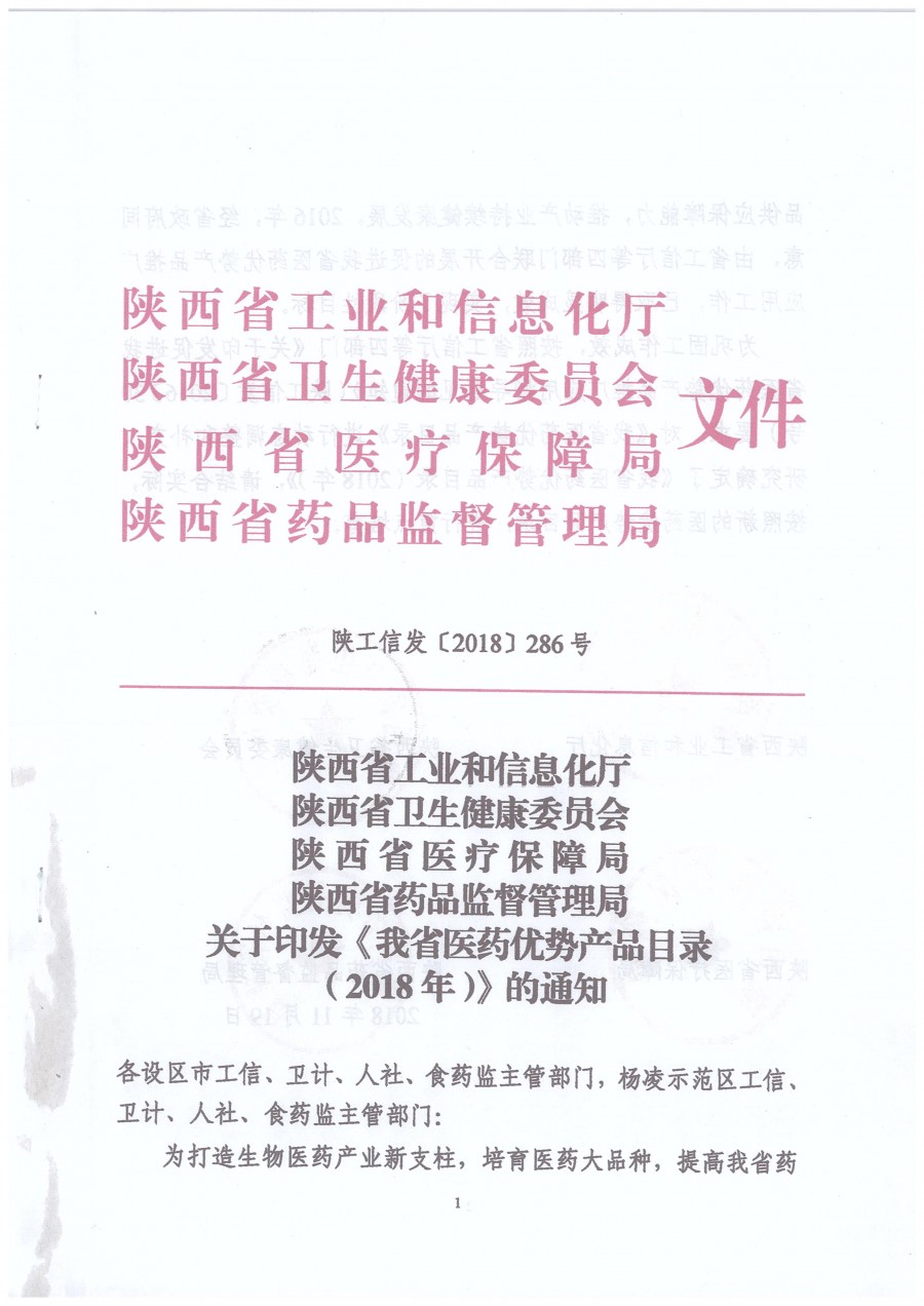 根据陕西省工业和信息化厅、陕西省卫生健康委员会、陕西省医疗保障局、陕西省药品监督管理局《关于印发促进陕西省医药优势产品推广应用指导意见的通知》(陕工信发[2016]30号),现对《陕西省医药优势产品目录》进行动态调整和补充,研究确定了《我省医药优势产品目录(2018年)》。 开云kaiyun官方在线入口产品《舒肝快胃丸》成功入选,将作为医药优势产品,进行重点培养。